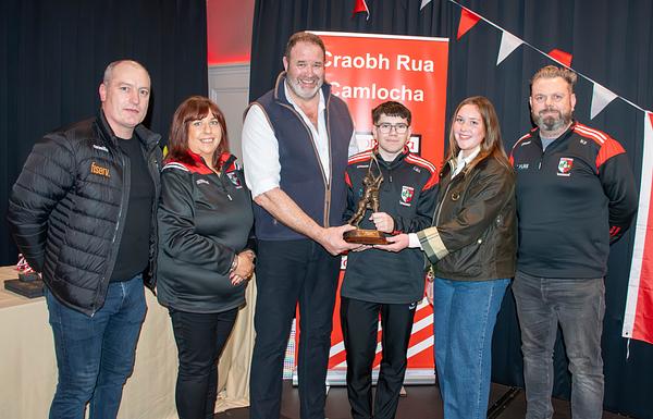 Cian McLoughlin was presented with the Paddy-Joe Quinn Award for 2026 by Patrick's father Gerard and sister Katie.