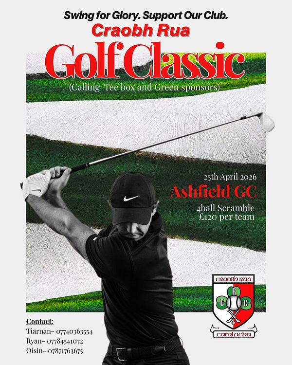 We’re delighted to announce our upcoming Golf Classic Competition in support of the Development of our club, Craobh Rúa Camlocha ⛳🏆