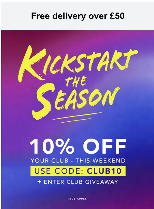 This weekend, take 10% off your Club Gear using code CLUB10. Gear up for the start of the season.