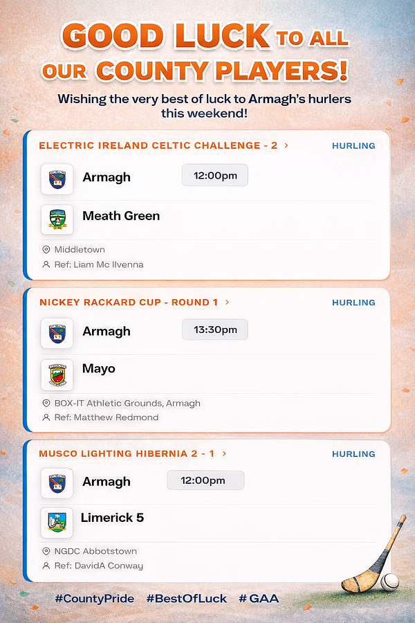 Best of luck to all our players representing Armagh this weekend! 🔶⚪