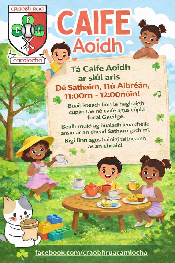 Everyone is warmly invited to come along, enjoy a cup of tea or coffee, and share a few words of Irish in a relaxed and welcoming atmosphere. It’s a great opportunity to practise your Gaeilge, meet new people, and have a chat.