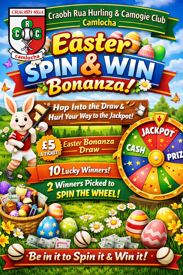 Hop into Easter fun with Craobh Rua Hurling & Camogie Club Camlocha and be in with a chance to SPIN & WIN BIG!