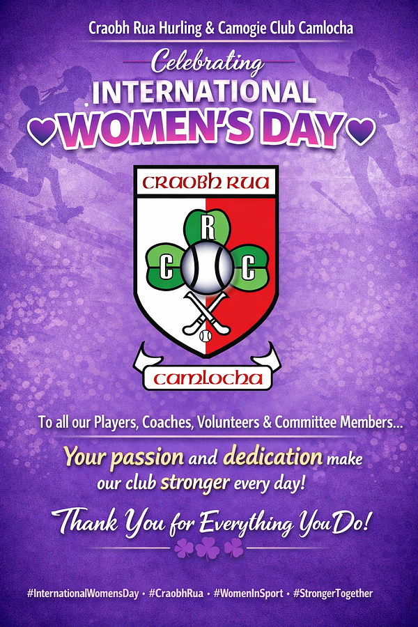 Today, on International Women’s Day, we celebrate all the incredible women and girls who are part of Craobh Rua Hurling & Camogie Club, Camlocha.