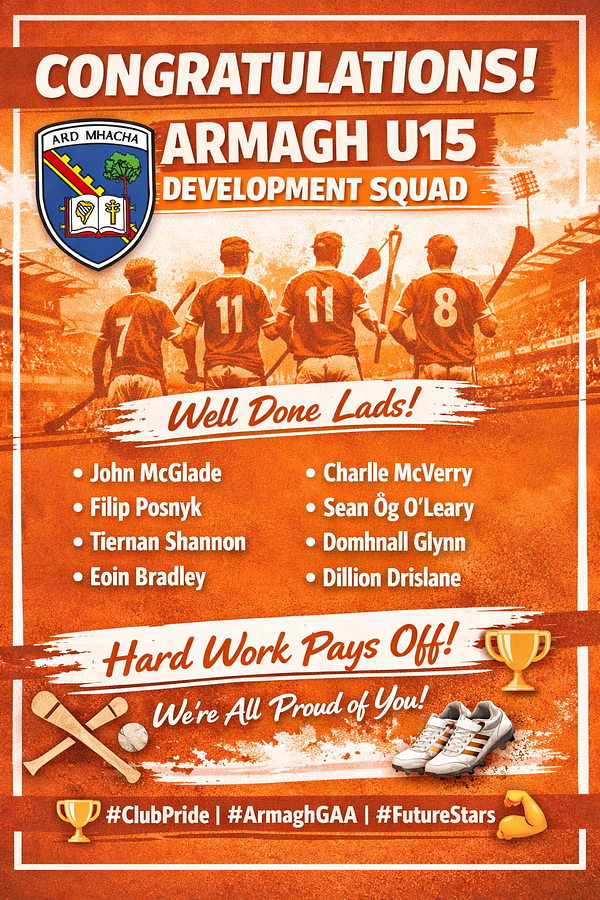 Huge congratulations to the following players on being selected for the Armagh U15 Development Squad! 👏